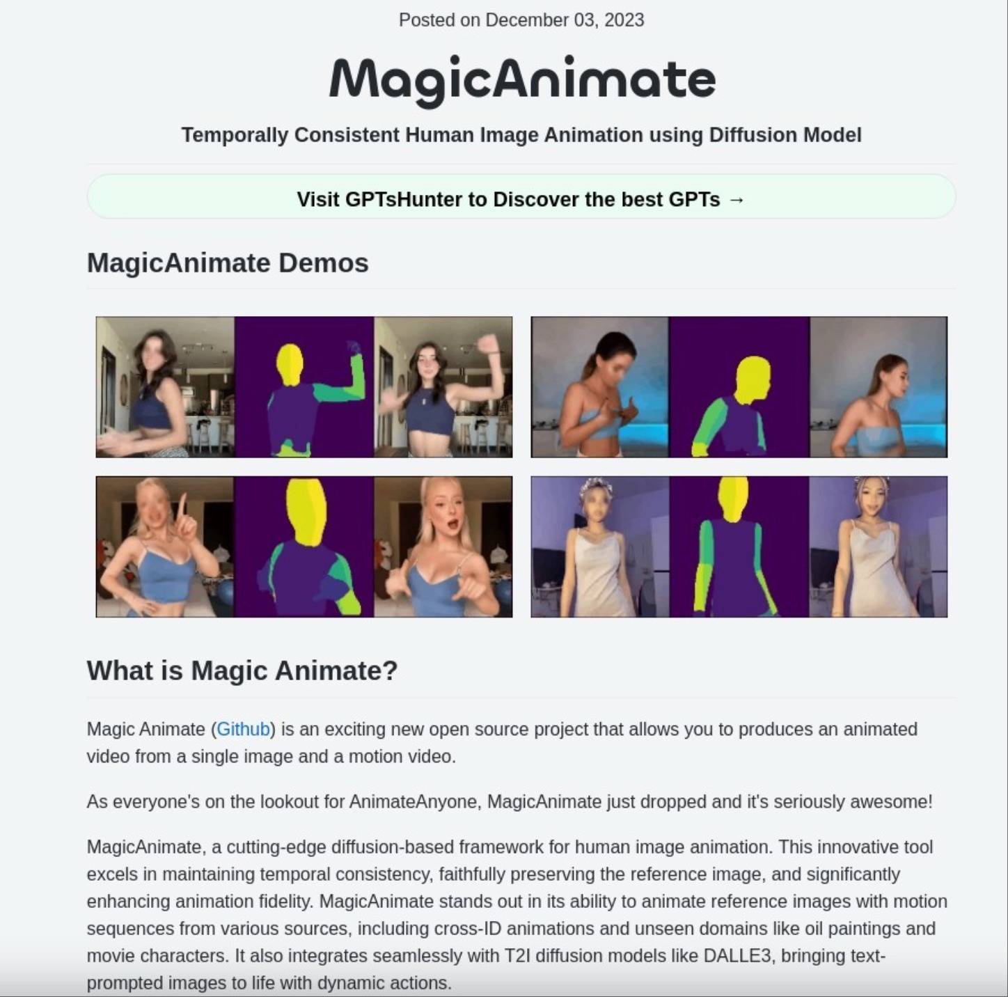 ▲MagicAnimate研究论文